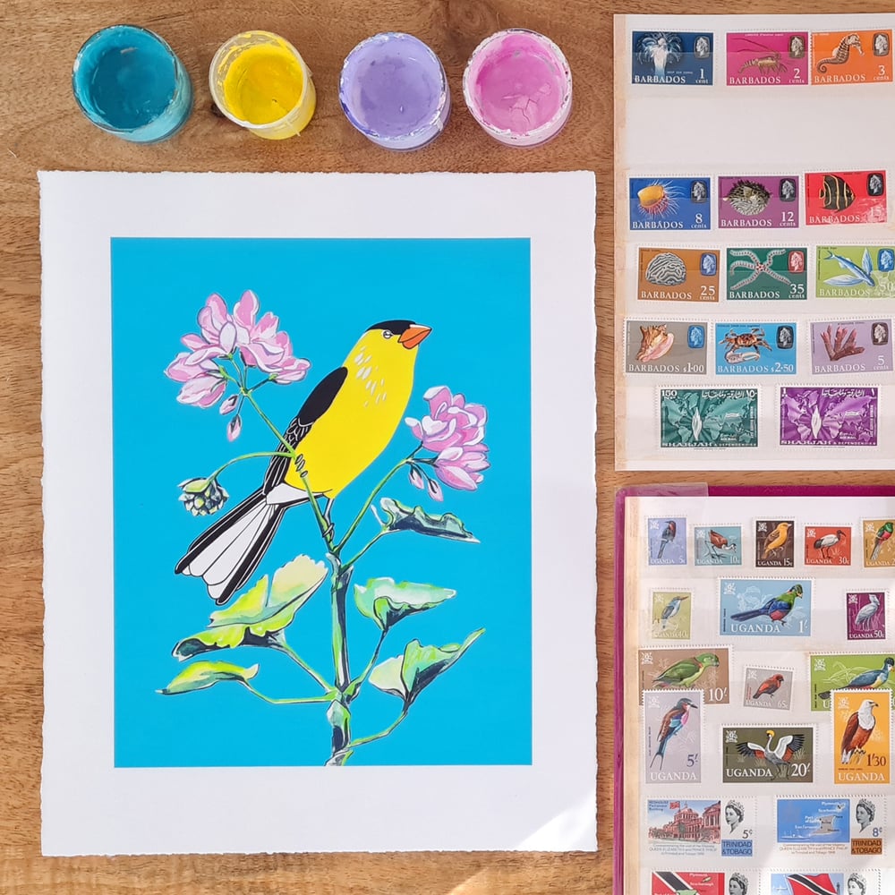 Stamps: American Goldfinch and Geranium